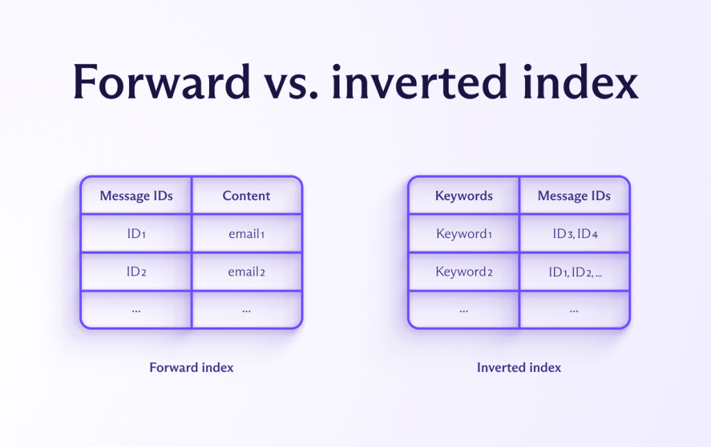 - Die Größe des typischen Postfachs liegt gut im Rahmen dessen, was ein Vorwärtsindex schnell bewältigen kann, wodurch der Leistungsvorteil eines invertierten Index in den meisten Fällen marginal ist.