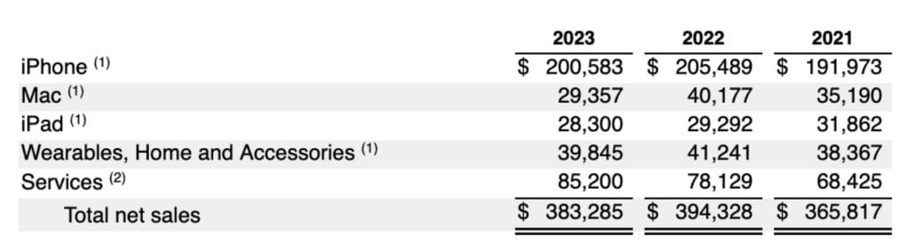 Tatsächlich fielen Apples Hardwareverkäufe von 2022 bis 2023(neues Fenster) um über 18 Milliarden Dollar. Unterdessen ist der Umsatz aus Dienstleistungen, einschließlich Werbung, stetig gewachsen.