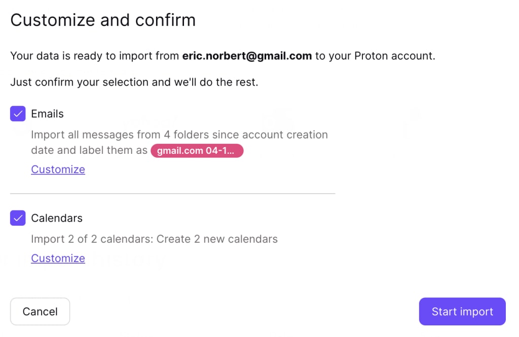 If migrating all your data at one go sounds daunting, you can always prioritize sensitive information. For example, folders and emails that contain updates from your bank and healthcare provider should go to your private Proton Mail inbox first. All your data arrives fully encrypted, so you don’t have to take additional steps to secure them.