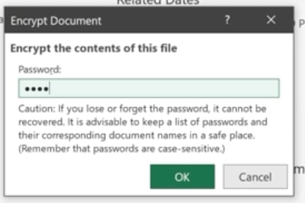 4. Save your file. The next time you open it, you will be asked for your password(s).