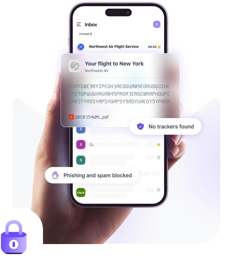 Grâce au chiffrement de bout en bout et au chiffrement zéro accès de Proton Mail, vous êtes la seule personne à pouvoir consulter vos e-mails. Même Proton n'y a pas accès, que ce soit pour vos messages ou vos pièces jointes.
