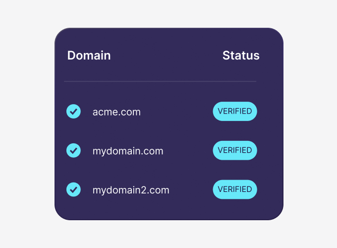 Ajoutez jusqu'à 15 domaines uniques pour superviser différentes marques, entités ou bureaux régionaux à partir d'une seule boîte de réception.