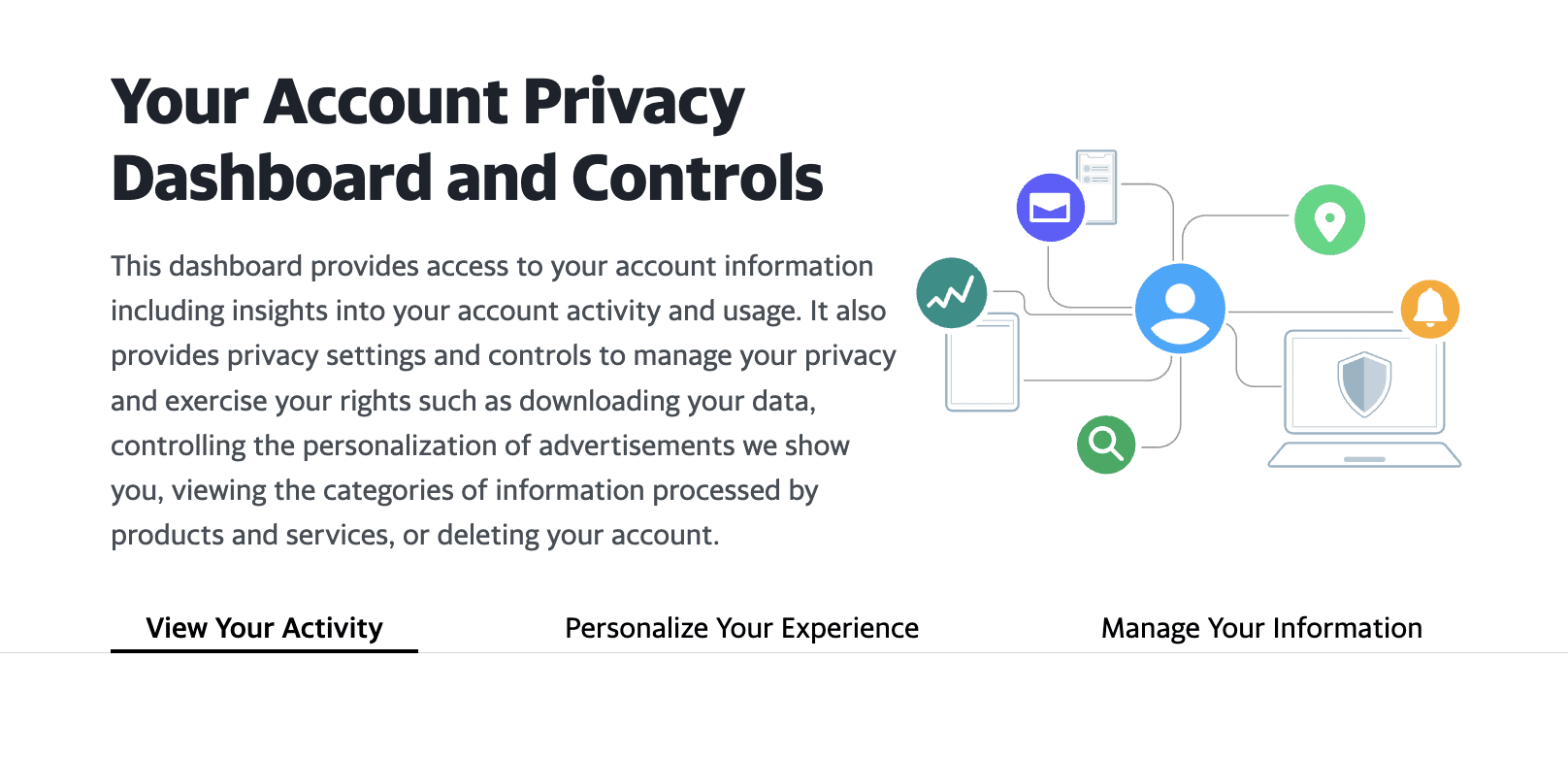 - First, visit Yahoo’s dedicated Account Privacy Dashboard(nowe okno) and select the product that holds the data you seek. In this case, click the Yahoo icon: