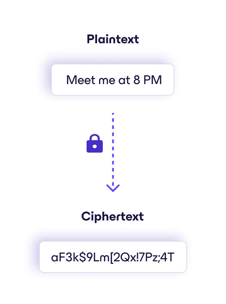 When you use a secure messaging app to text a friend “Meet me at 8 PM,” the app encrypts the message before it leaves your phone, turning it into ciphertext. When it arrives on your friend’s device, their app uses the correct encryption key to convert the ciphertext back into the original message.