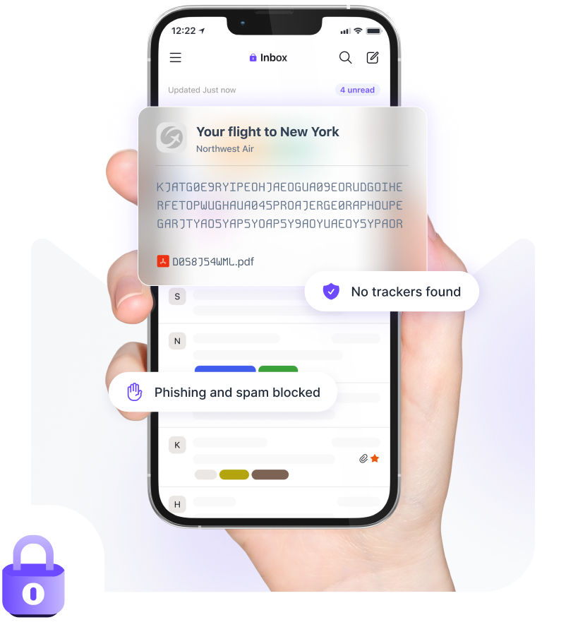 A encriptação ponto a ponto e de acesso zero do Proton Mail garante que é a única pessoa que consegue ver os seus e-mails. Nem a Proton pode ver o conteúdo dos seus e-mails e anexos.