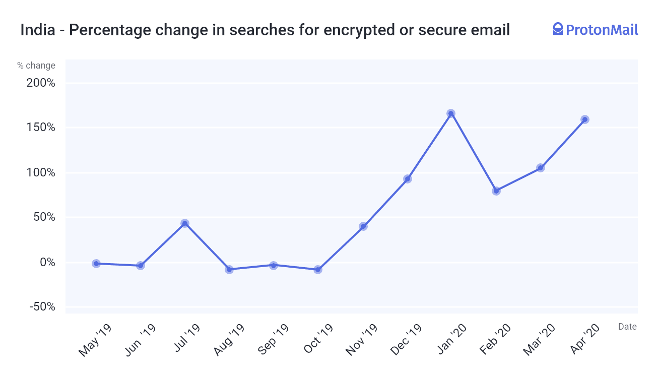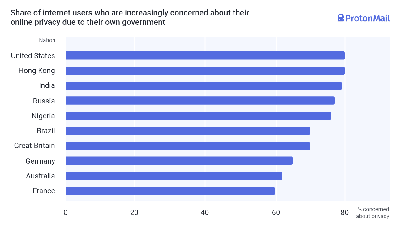 The appetite for better privacy is widespread and growing. If you narrow the Google search results to just English, global searches for email services that protect privacy are up 41 percent. This is likely because countries like the US have a poor record protecting privacy.