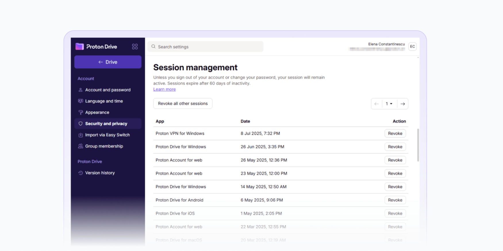 Even with strong login security practices in place, it’s important to stay alert for signs of unauthorized access(new window) so you can act quickly if your account is targeted. Proton offers multiple tools to help you monitor and protect your account: