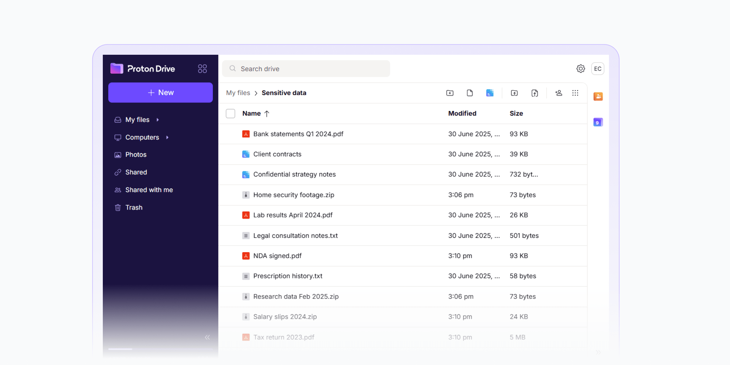 With Proton Drive, this step isn’t necessary. Your files — including metadata — are automatically protected with end-to-end encryption before they leave your device, so only you and the people you choose to share them with can access them.