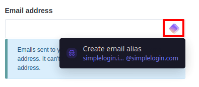 - Alternatively, simply click the Proton Pass autofill icon next to the email address input field to create an alias using the default settings.