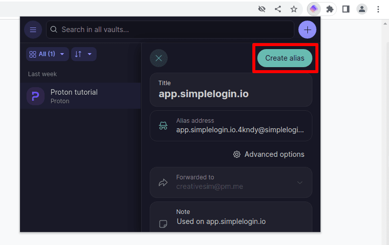 Proton Pass can also help you create unique aliases on the go, which you can then manage either your Pass or your SimpleLogin dashboards. As long as you’re using the same email address for your Proton account and your SimpleLogin account, you’ll be able to sync aliases between both accounts.