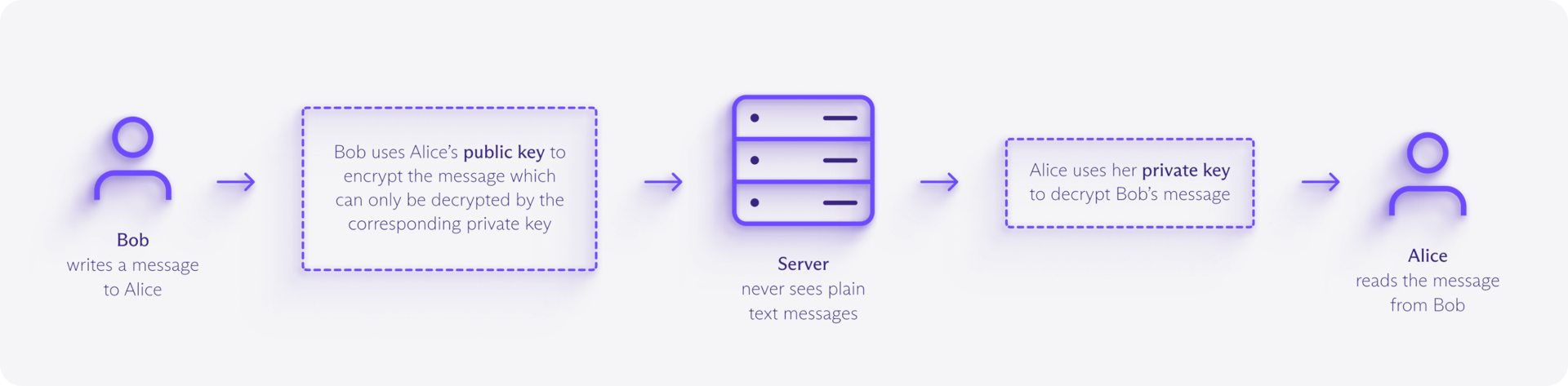 You lock your contents inside the box before sending it through the mail, and it stays locked as it travels through each postal checkpoint — the “servers.”