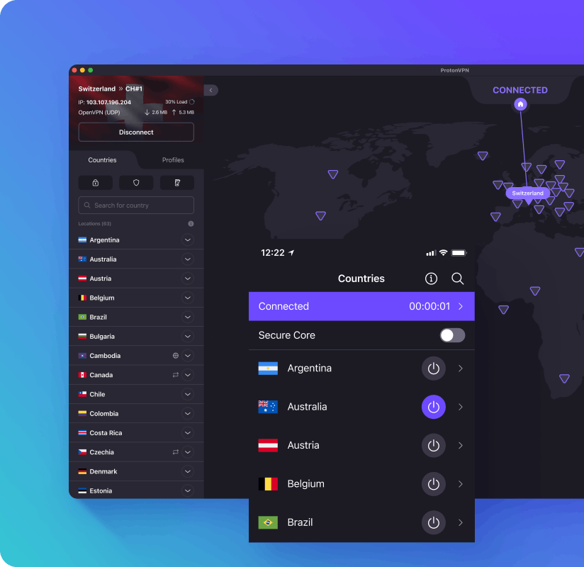 Connect to Proton VPN and get work done no matter how data intensive — browse the web, download files, and join video meetings like normal.