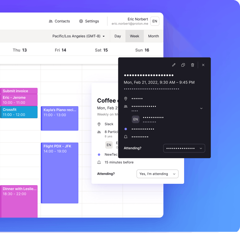 Secure your calendar — every task and event you add to your calendar is stored with encryption. Sending calendar invites? Those are sent through your encrypted email account.