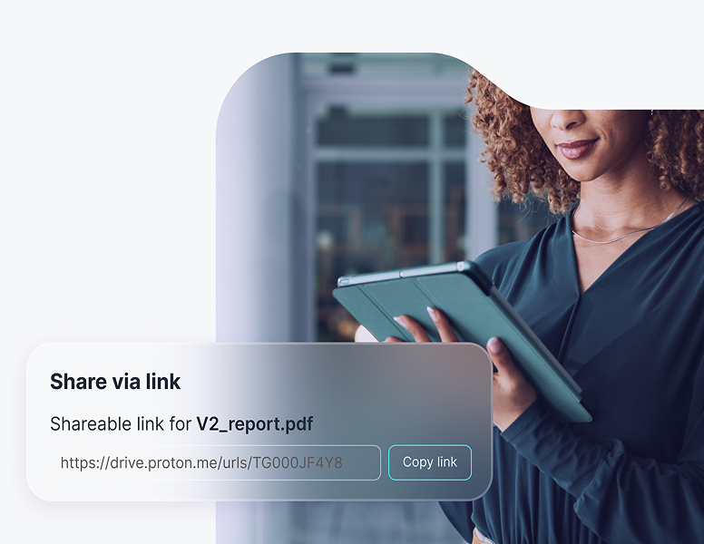 Open, edit, and share your documents on any device. Proton Drive supports Windows, macOS, Android, iOS, and a web app. You can also work offline — changes sync when you’re back online.