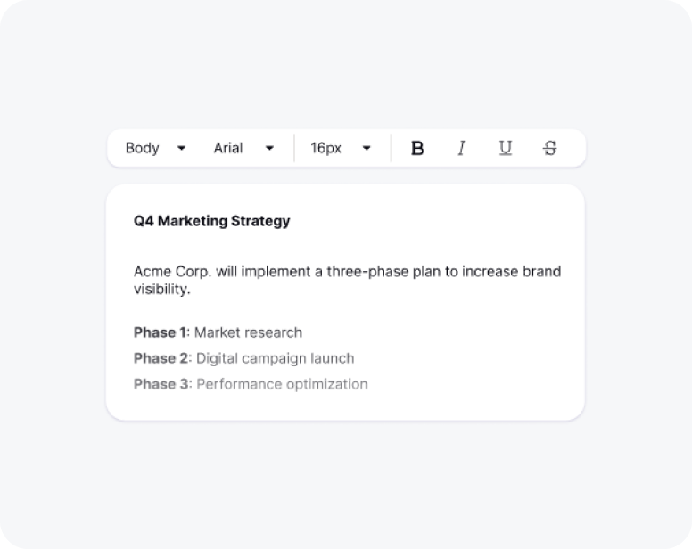 Keep a record of discussions, decisions, and action items so teams can stay aligned and follow up.