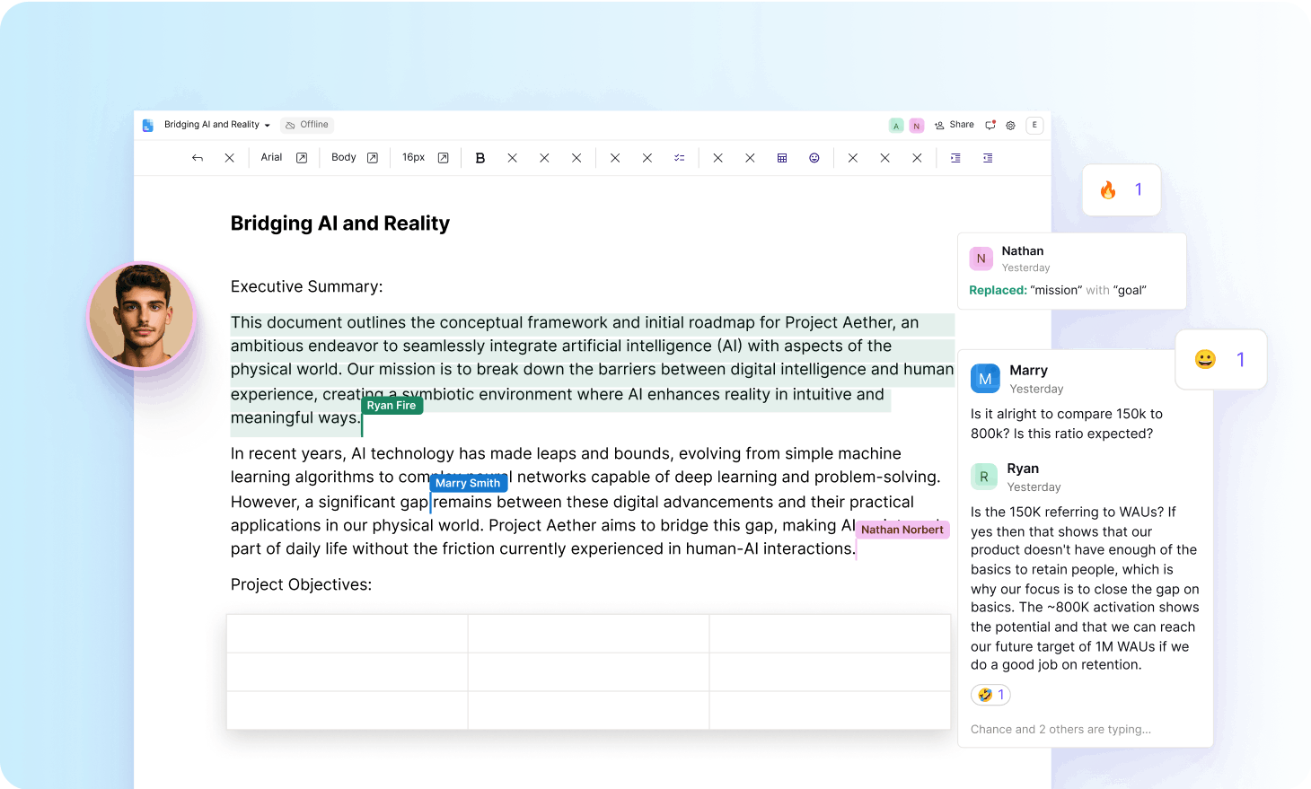 Docs v Proton Drive umožňuje vytvářet a upravovat osobní a pracovní dokumenty s ostatními v reálném čase. Na rozdíl od Google Docs je každé stisknutí klávesy v našem zabezpečeném editoru dokumentů ve výchozím nastavení koncově šifrováno. Můžete psát svobodně s vědomím, že vaše slova nebudou nikdy analyzována, sdílena ani zpeněžena.