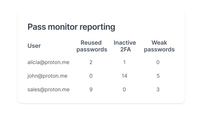 Přihlaste se do Proton Pass a všech svých firemních nástrojů pomocí jednotného hesla, což zjednoduší pracovní postupy vašeho týmu a sníží únavu z hesel.