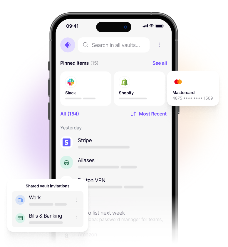Chraňte hesla, přístupové klíče a platební karty pomocí koncového šifrování s nulovou znalostí. To znamená, že nikdo jiný, dokonce ani Proton, nemá přístup k vašim citlivým informacím, pokud je nesdílíte.