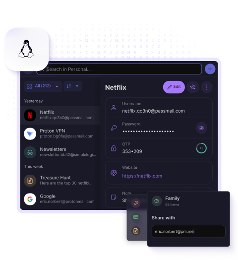 Bezpečně ukládejte, spravujte a sdílejte hesla, poznámky a další informace pomocí našeho šifrovaného správce hesel pro Linux.