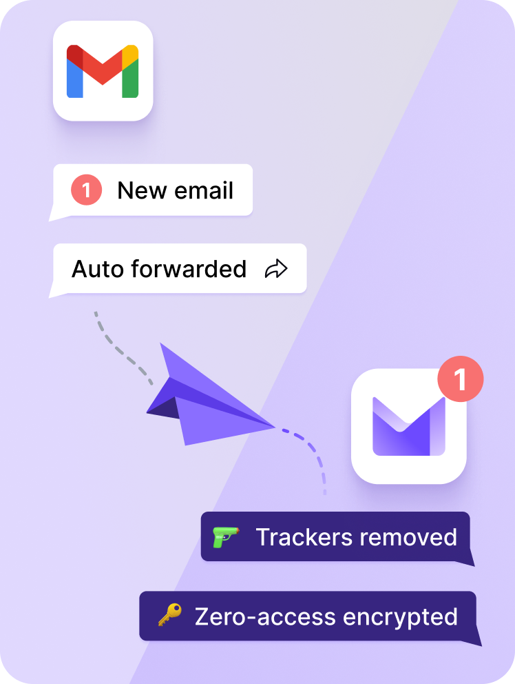 Din Proton Mail-adresse bliver aldrig afsløret for Gmail for at beskytte dit privatliv.