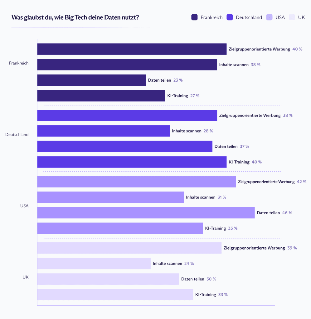 Länderübergreifend glauben die Befragten, dass ihre Tabellendaten verwendet werden könnten für: