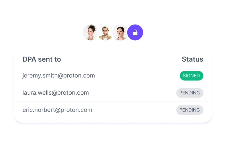 Proton Mail verfügt über eine Vereinbarung zur Datenverarbeitung (DPA) mit Geschäftskunden, in der die spezifischen Rechte und Pflichten jeder Partei, die für die Einhaltung der DSGVO erforderlich sind, aufgeführt sind.