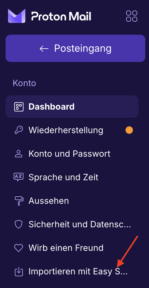 3. Klicken Sie im Menü auf der linken Seite auf "Importieren mit Easy Switch".