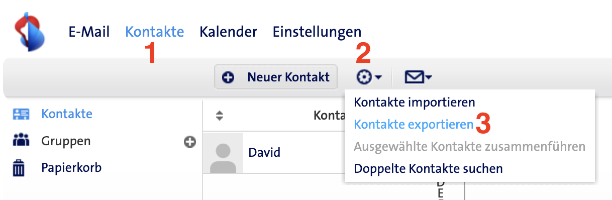 - Klicken Sie auf "Kontakte exportieren". Eine Datei "contacts.csv" wird mit Ihren Kontakten heruntergeladen.