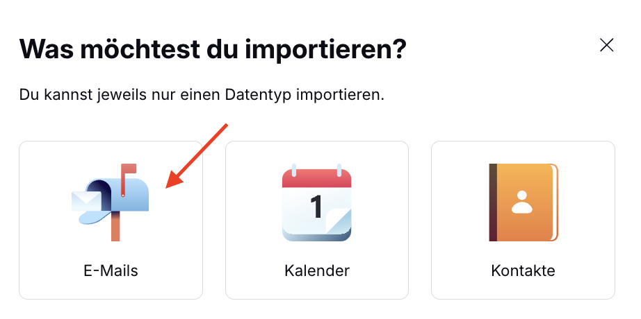 5. Wählen Sie auf dem Bildschirm "Was möchtest du importieren?" die Option "E-mails" und fahren Sie fort.