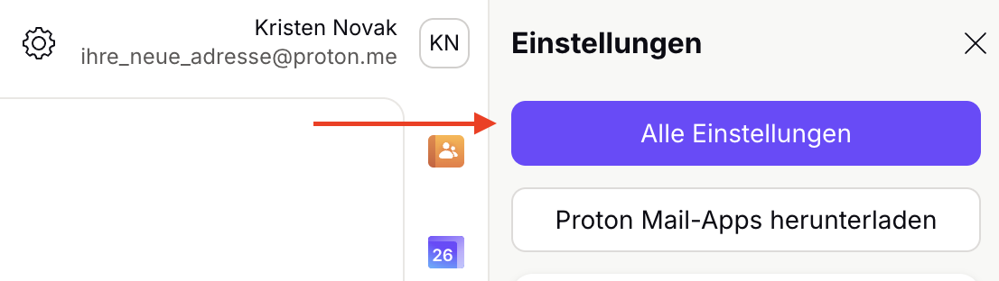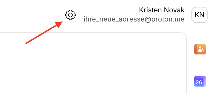 - Klicken Sie in Ihrem E-Mail-Postfach Proton Mail oben rechts auf die Schaltfläche Einstellungen.