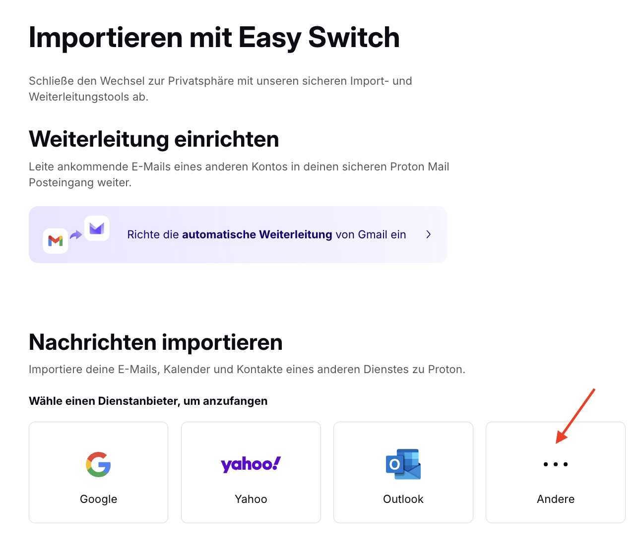 Einrichten des automatischen Transfers von Bluewin zu Proton Mail.