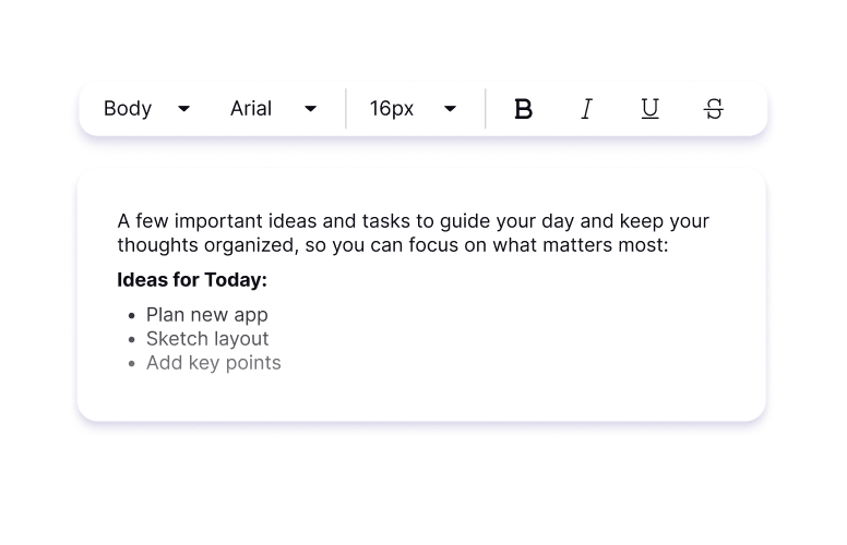 Write and present your ideas, your way. Format documents with fonts, images, tables, and checklists that help you communicate clearly.