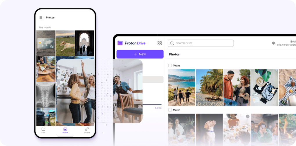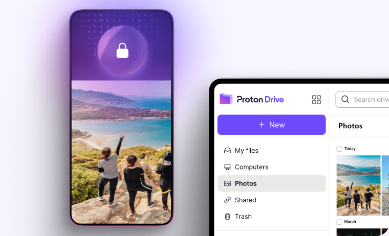 Proton Drive automatically uploads your photos to a secure cloud, ensuring your memories stay protected and are always accessible.