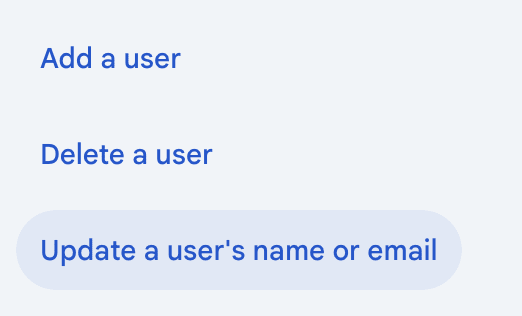 - Under Users, click on the email address you want to change or click Update a user’s name or email and enter the username manually.