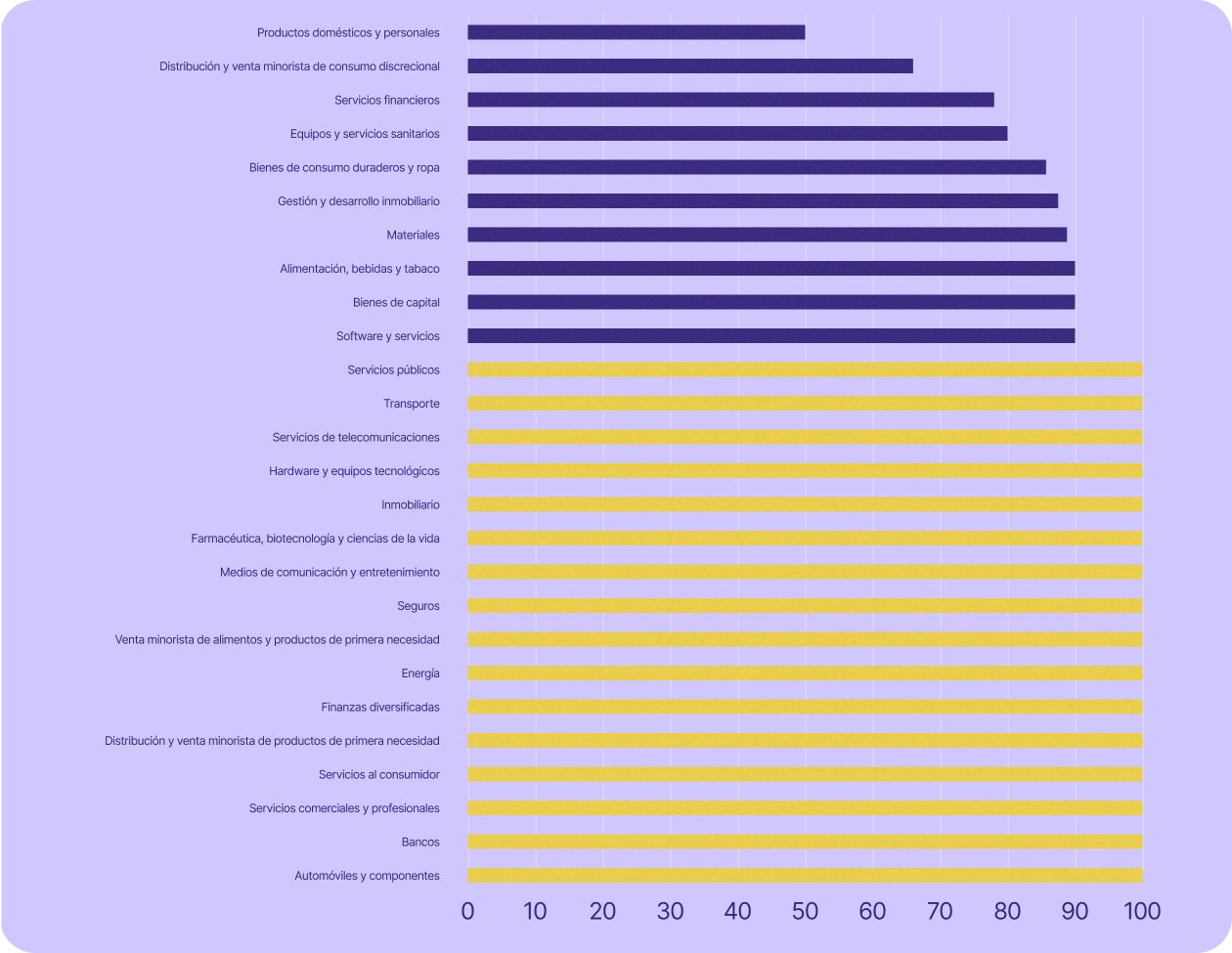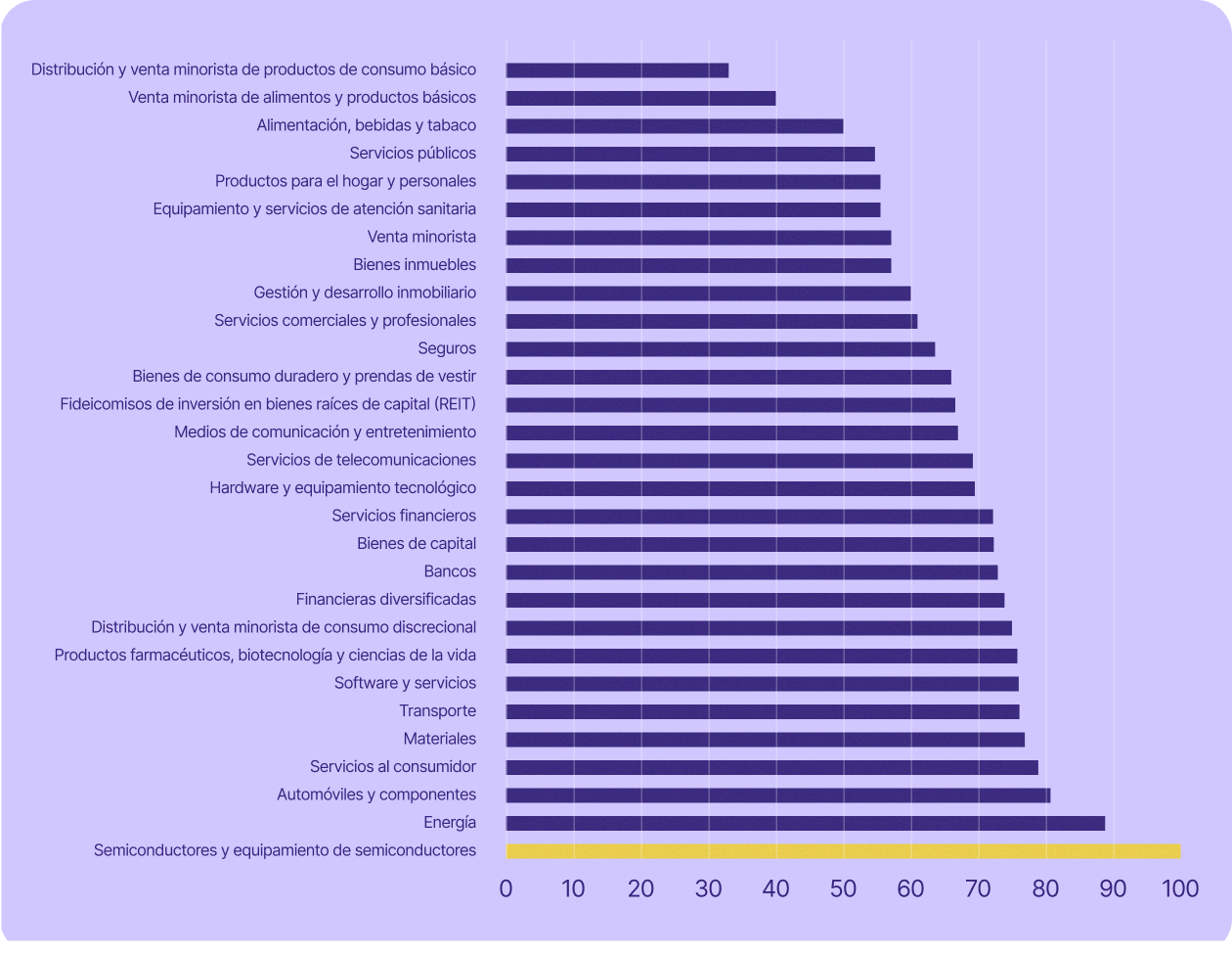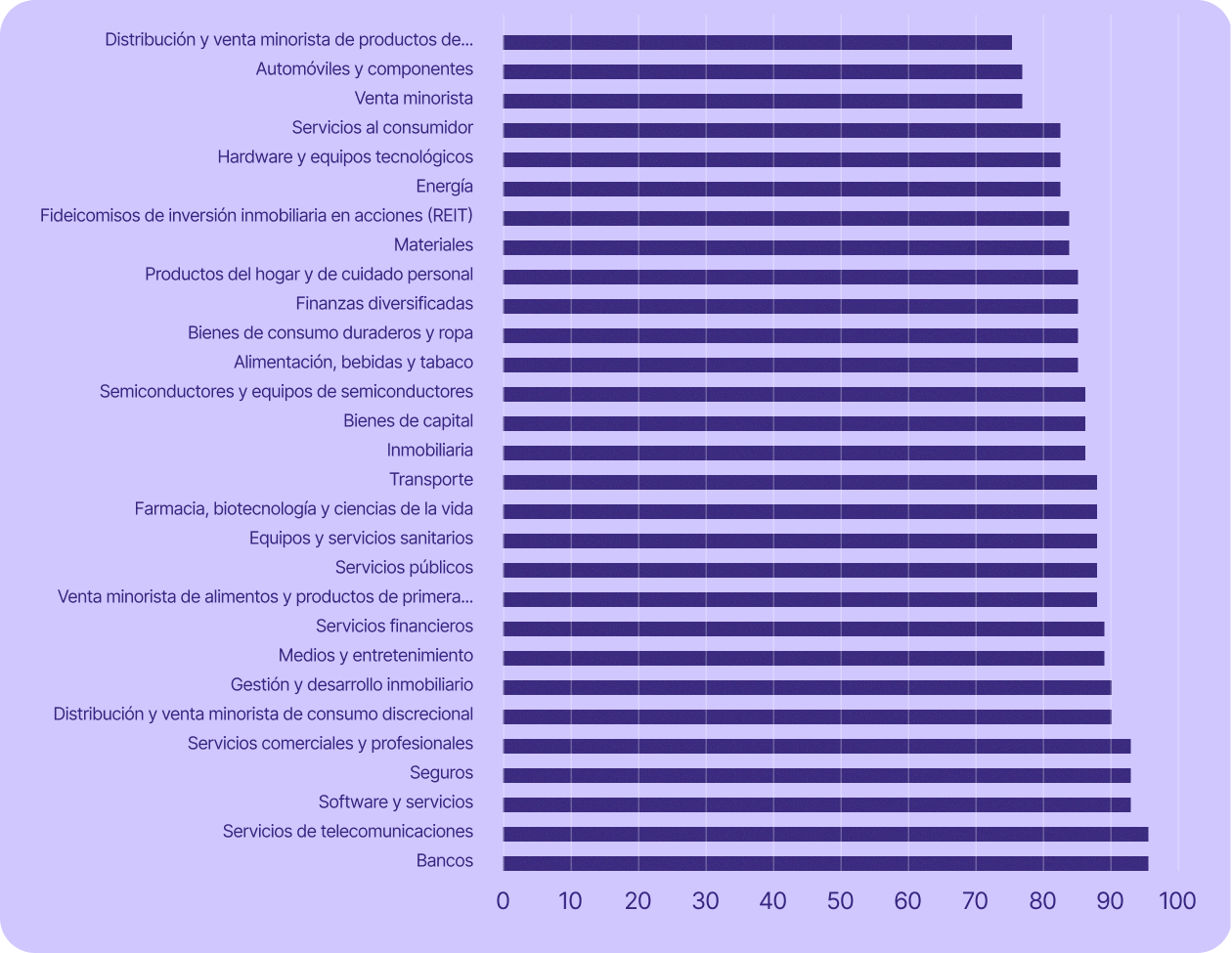 Algunos de los sectores más críticos para la economía suiza están aún más expuestos. El sector servicios, que incluye la banca, las finanzas, los seguros y los servicios profesionales (entre otros), representó el 70 % del PIB del país en 2023 y empleó al 78 % de su población activa en 2024. En todos estos sectores (excepto en la banca), al menos el 67 % de las empresas que cotizan en bolsa utilizan tecnología estadounidense.