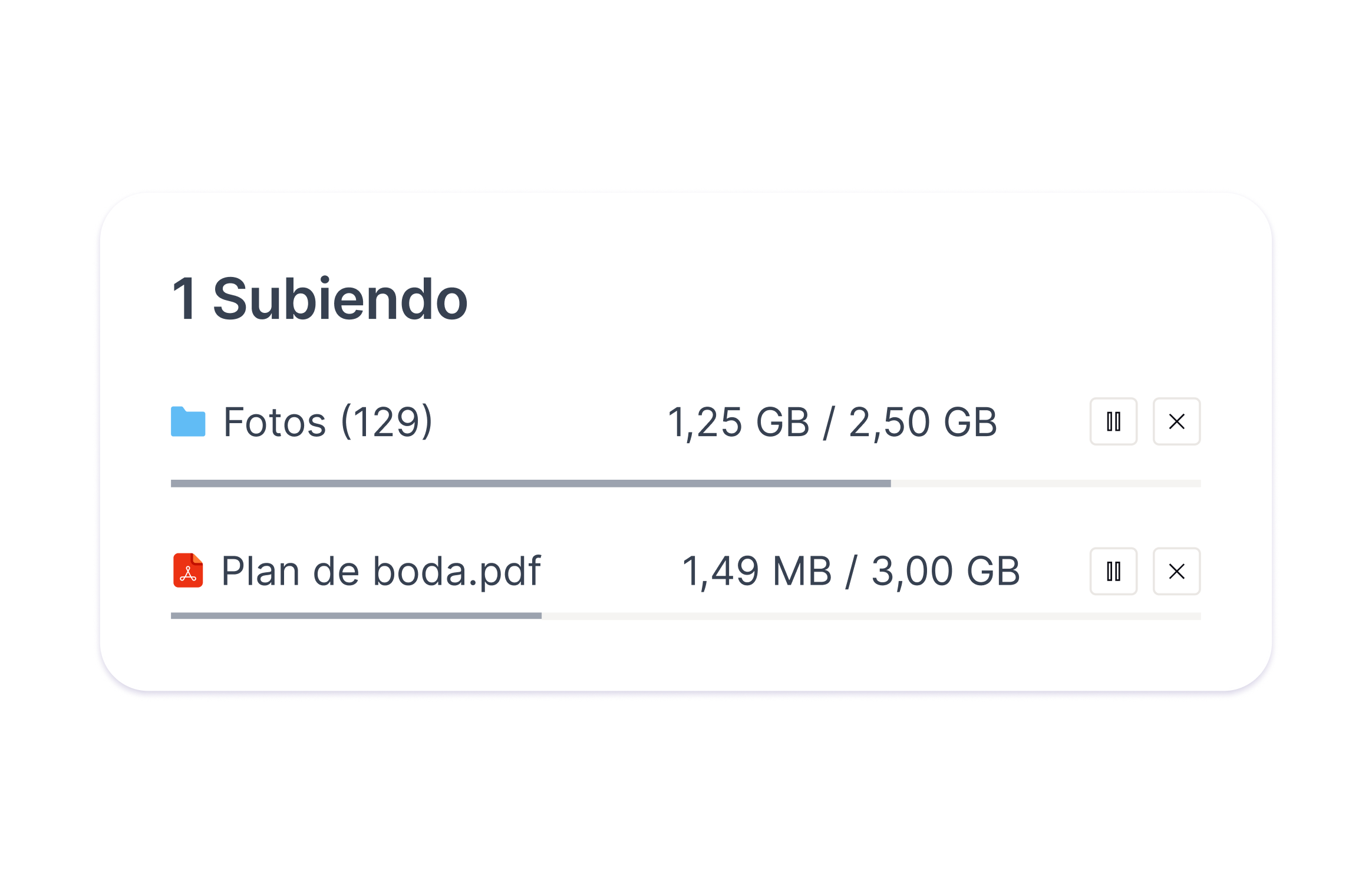 Carga y comparte cualquier tipo de archivo, incluyendo fotos y vídeos de todos los tamaños, sin restricciones.