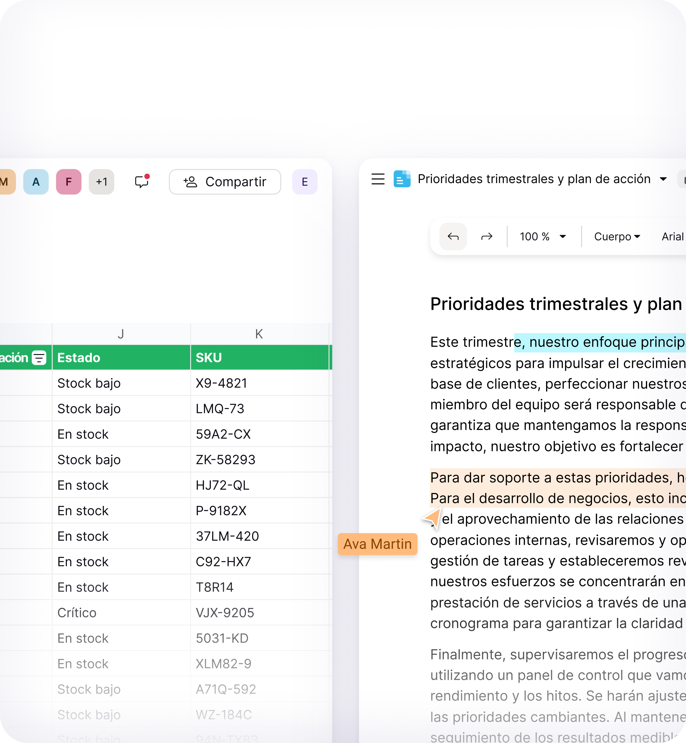 Docs y Sheets en Proton Drive te permiten colaborar en documentos y hojas de cálculo en tiempo real sin comprometer tu privacidad. Cada pulsación se cifra de extremo a extremo, por lo que tu trabajo nunca será analizado, compartido ni monetizado.