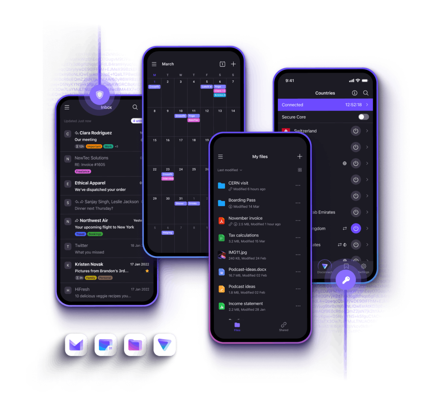 Obtén correo electrónico cifrado, calendario, almacenamiento en la nube y una VPN.