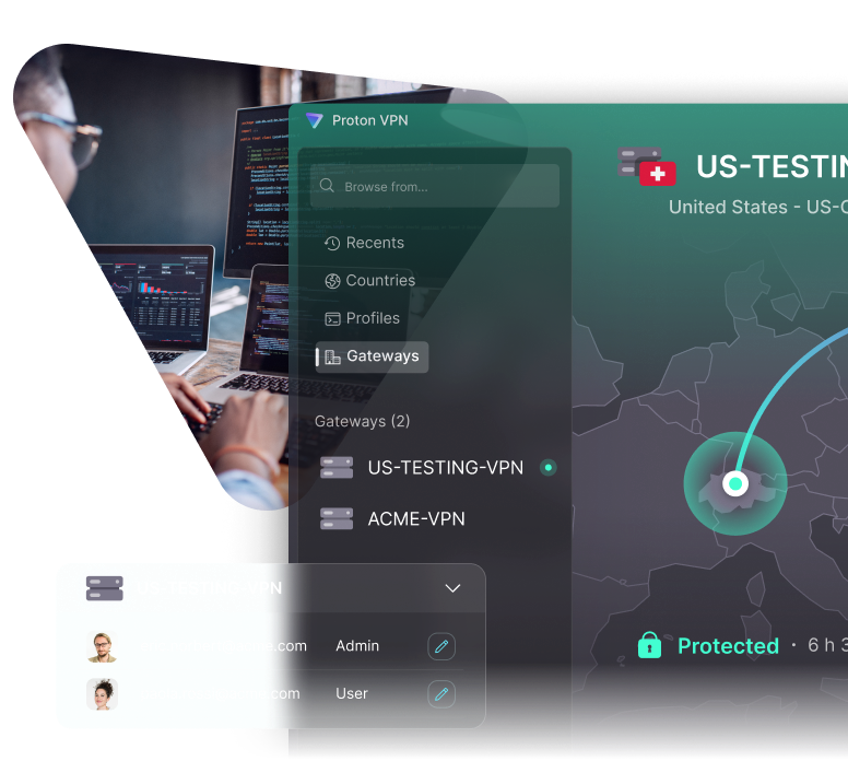 Streamline global testing without worrying about compromising your cybersecurity. Proton VPN uses two robust encryption protocols, AES-256 and ChaCha20, to provide your business with the very best protection.