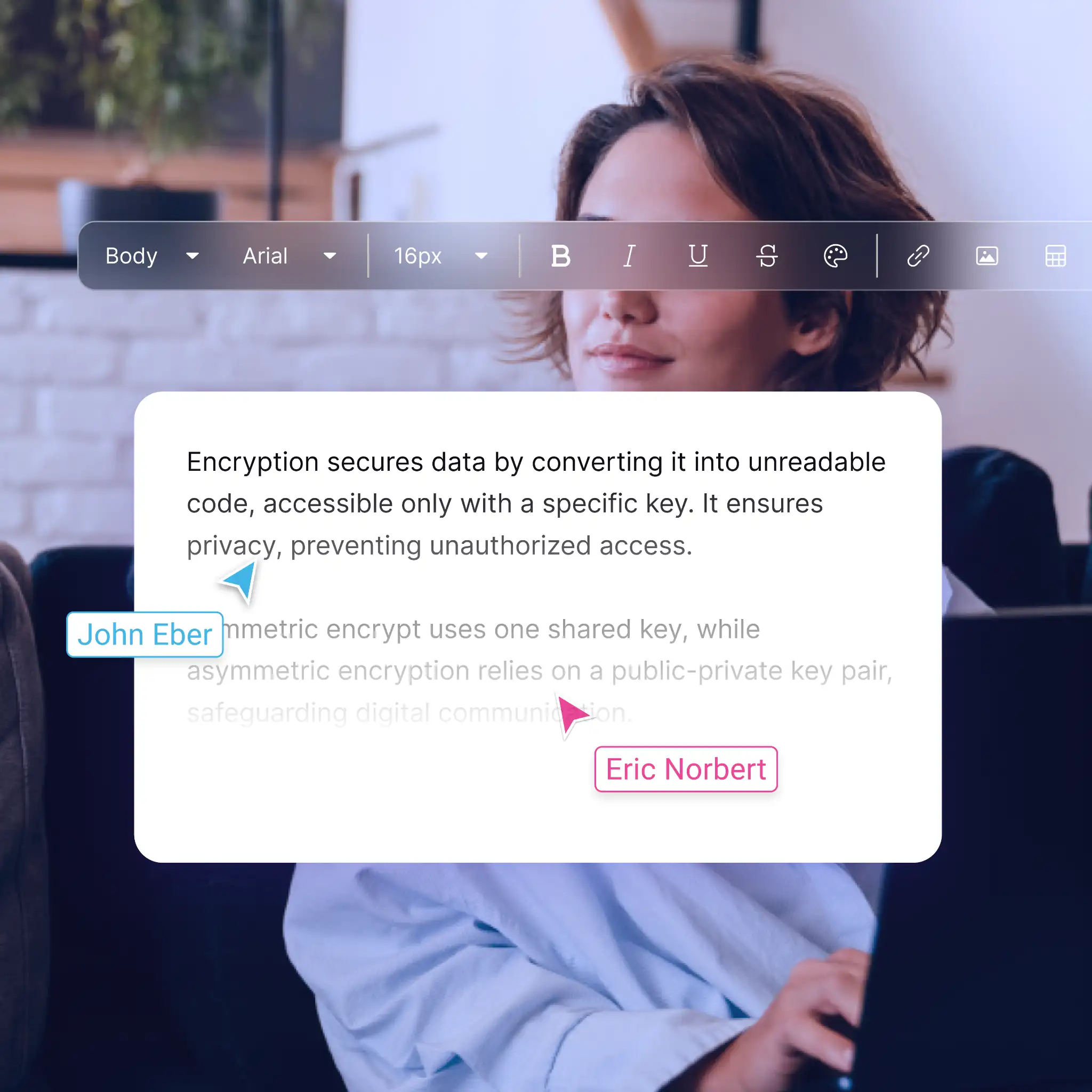 Modifiez en équipe avec des documents collaboratifs chiffrés, à l'abri des regards indiscrets.
