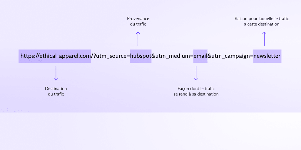 Voici comment se décompose un lien avec des paramètres de suivi UTM habituels.