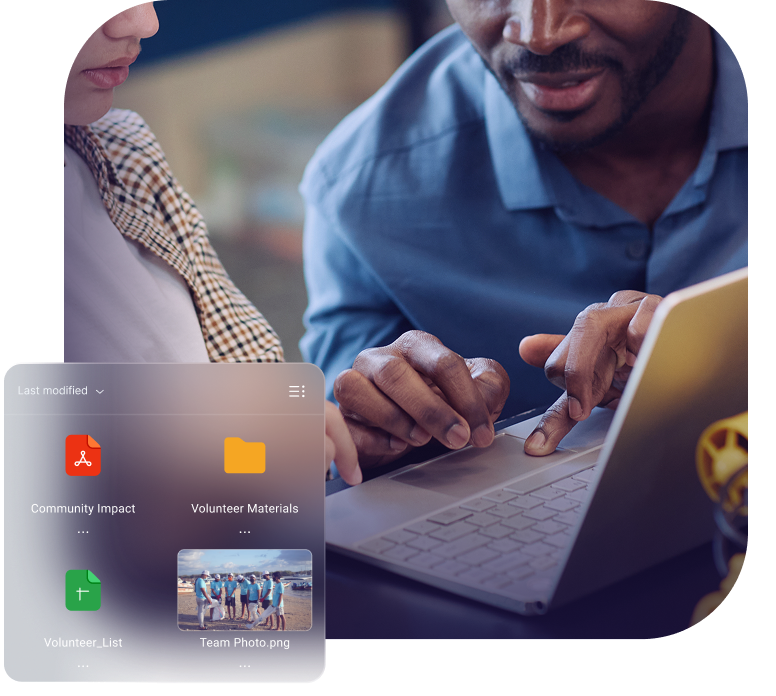 Des dossiers des donateurs aux données des bénéficiaires et aux plans de plaidoyer, le stockage cloud chiffré de Proton Drive vous permet de stocker, de consulter et de partager des fichiers importants en toute sécurité sur tous vos appareils, quand et où vous en avez besoin.