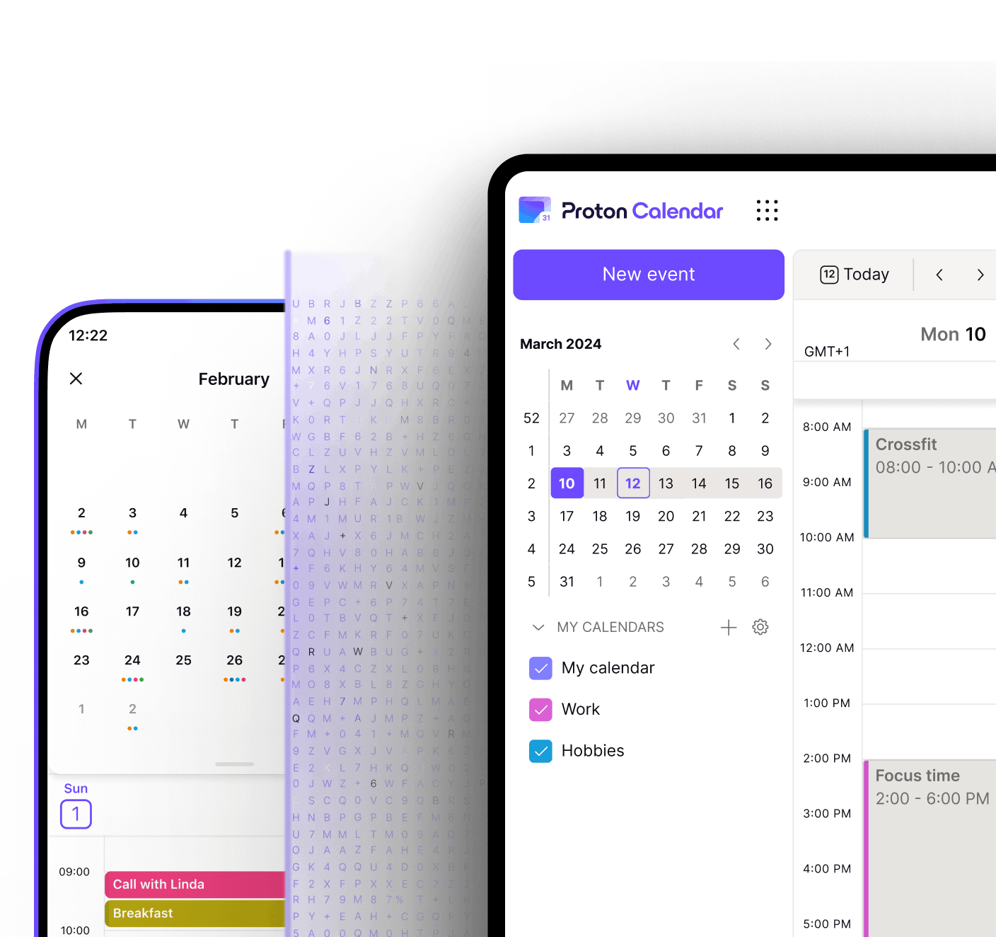Téléchargez l'application Proton Calendar pour accéder en toute sécurité à votre calendrier chiffré depuis votre appareil.