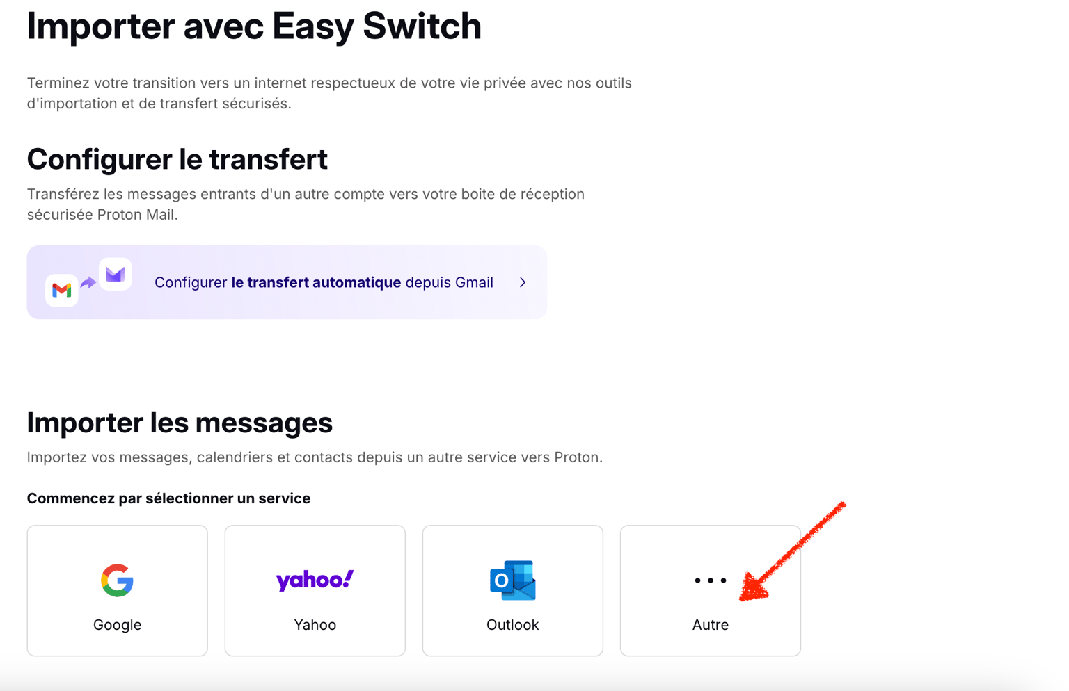 4. Dans l’écran Easy Switch, sous “Importer les messages”, choisissez “Autre”