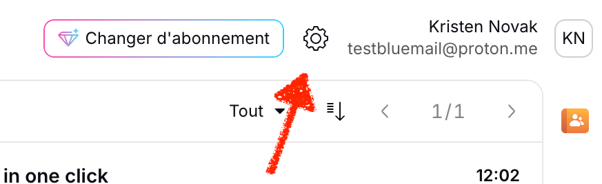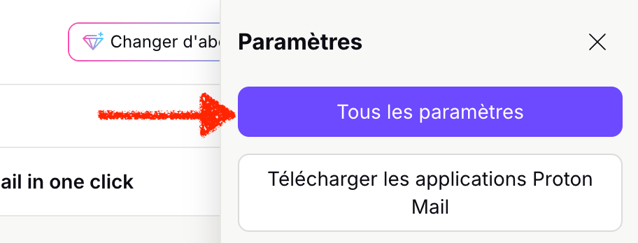 1. Dans votre boîte e-mail Proton Mail, cliquez sur le bouton Paramètres en haut à droite.