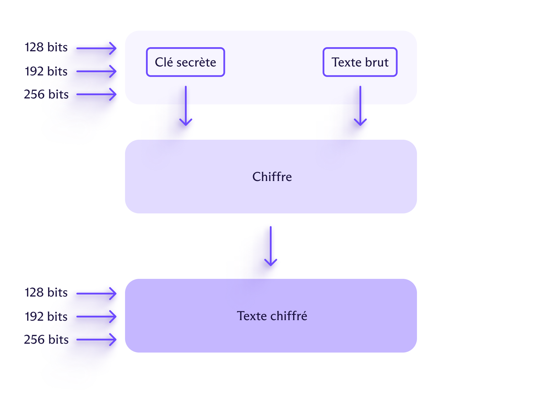 Par exemple, une clé de 1 bit n'a que deux valeurs possibles (1 ou 0), ce qui la rend facile à deviner. Une clé de 128 bits, en revanche, aurait 340 décillions de combinaisons possibles (soit 340 suivi de 36 zéros), rendant les attaques par force brute pratiquement impossibles.