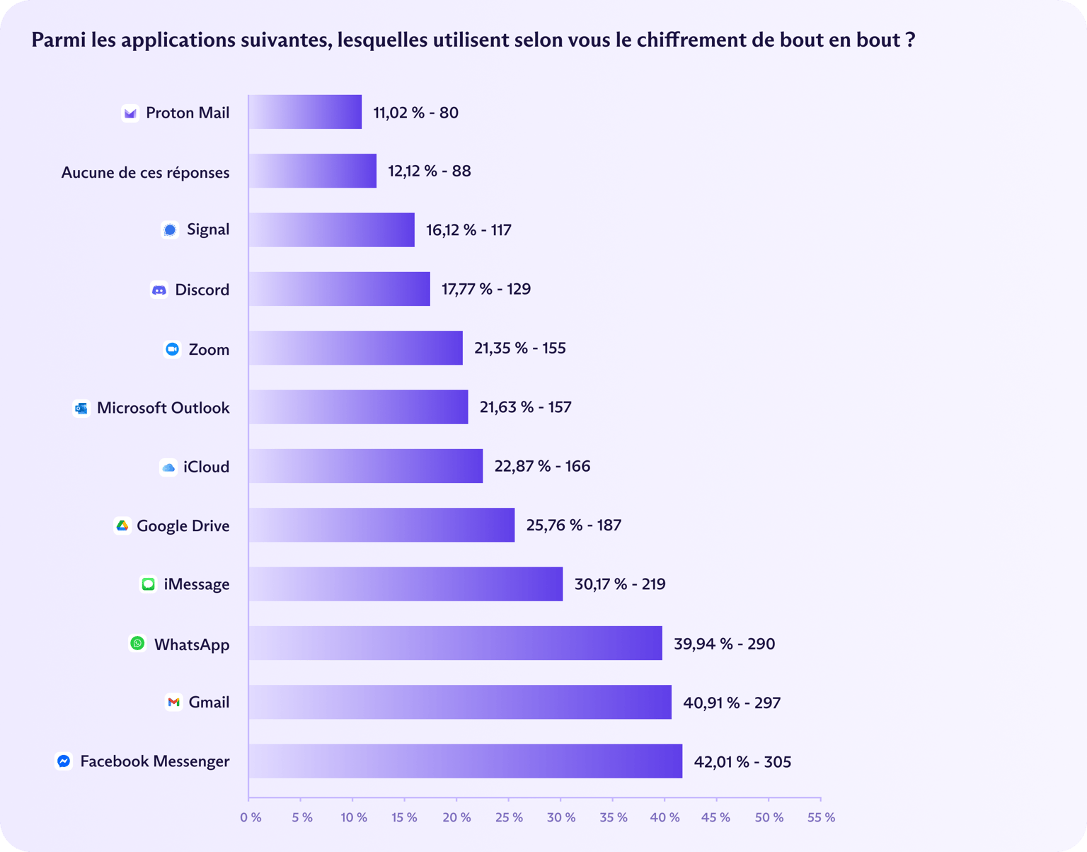- 47 % croyaient que WhatsApp utilise le chiffrement de bout en bout (correct)