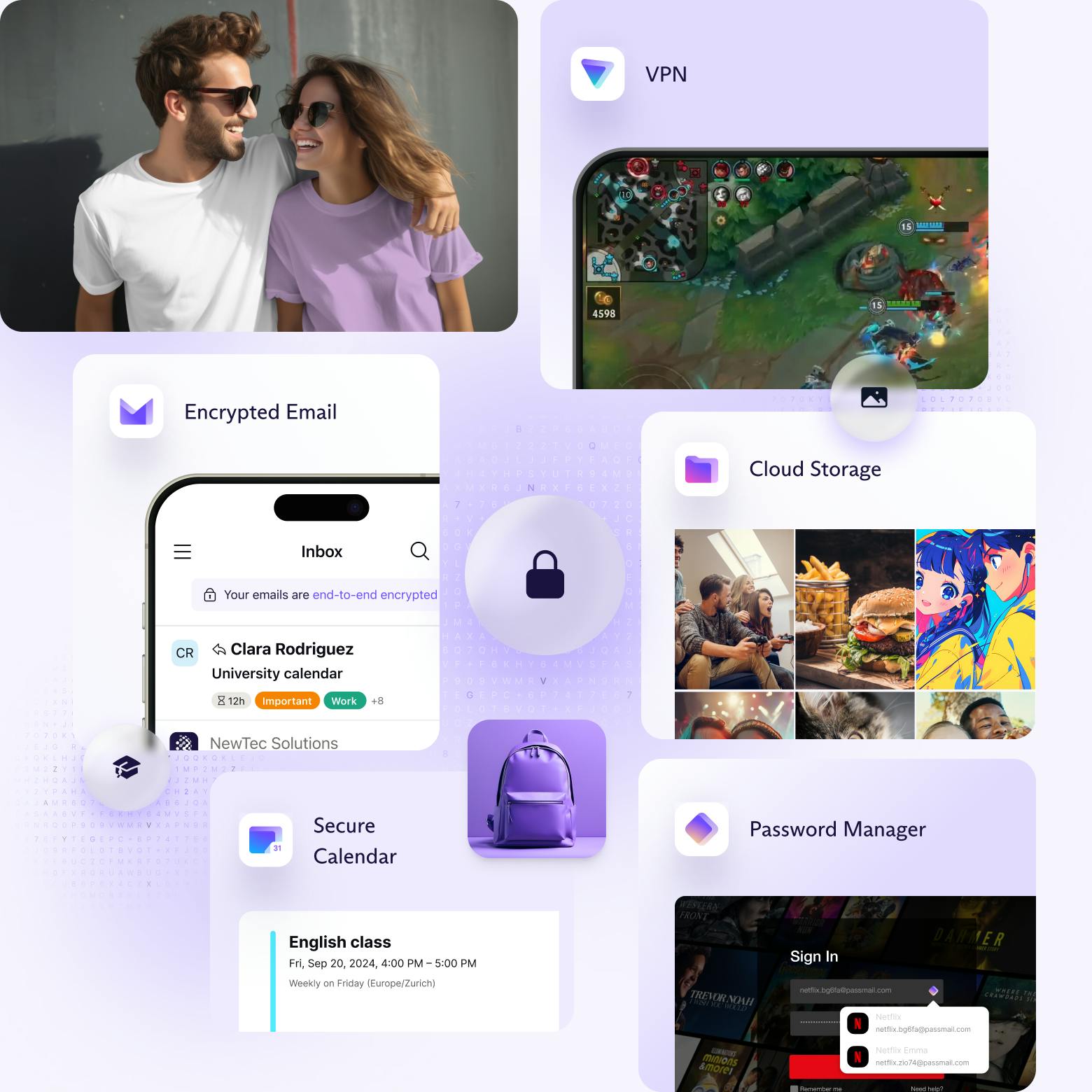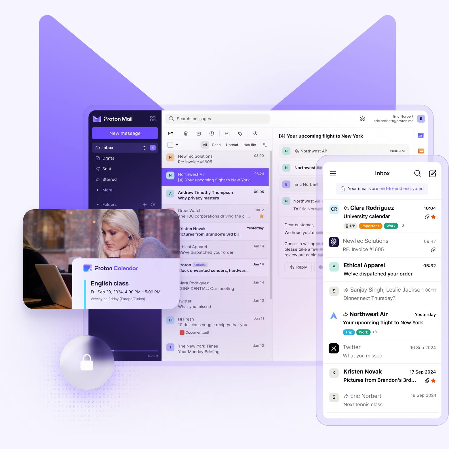 Tous vos messages sont protégés par le chiffrement de bout en bout, qu'il s'agisse de notes de cours, de détails concernant votre petit boulot d'appoint ou de vos discussions entre amis. À part vous et le destinataire, personne ne peut les lire. Quand vos e-mails sont encore plus privés que vos messages privés, vous n'avez plus rien à craindre des fouineurs.