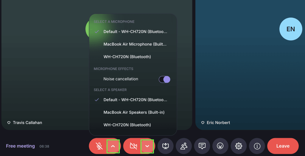 On macOS, you may see additional camera and microphone controls in the system menu bar (green camera icon) while using Proton Meet.
