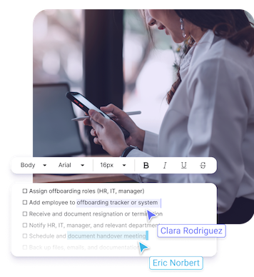 Download our free offboarding checklist templates and use our online document editor to customize, collaborate, and securely share them with your team.